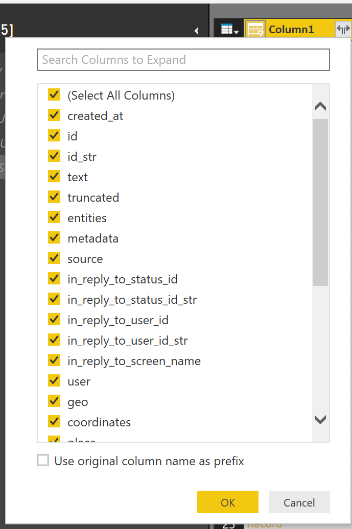 On the column expansion dialog simply click “Ok” again to see all the results of the nested JSON document.