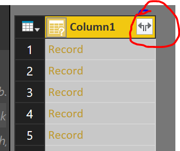 Notice the “To Table” option at the top, by changing this list to a table, we will be able to expand the Record to all the values. Click “Ok” in the To Table dialog and you will see the magic expand button pop up in the column header.