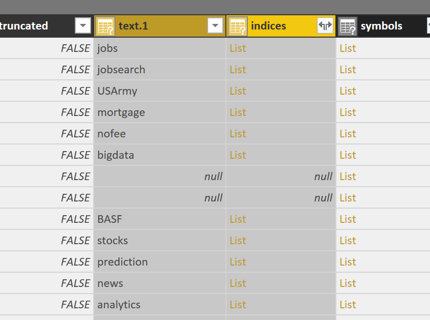 Finally click the magic expand button one last time to be greeted by the hashtag records we wanted.