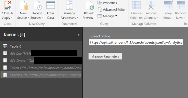 GetJsonQuery = Web.Contents("https://api.twitter.com/1.1/search/tweets.json?q=Analytics&count=100",