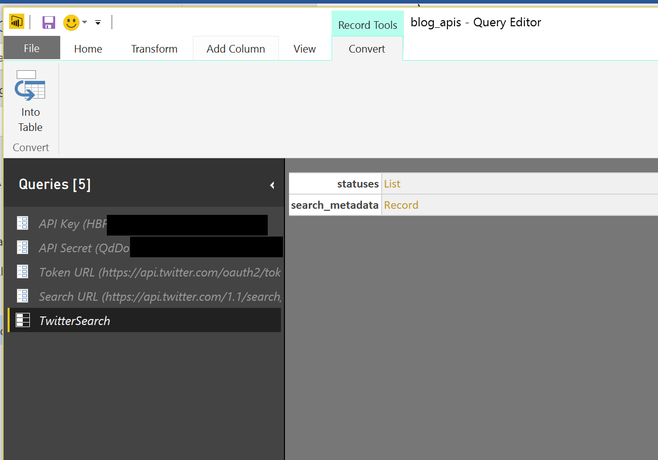 First of all, twitter connectivity via Power Query has already been blogged about a few times. The most useful post I found on it was by Chris Koester here. The script I am using later in this article is nearly identical to what I learned from his post. I will talk through the necessary script that has to be written but also focus on how you can transverse JSON data that gets returned from most modern APIs you will encounter.