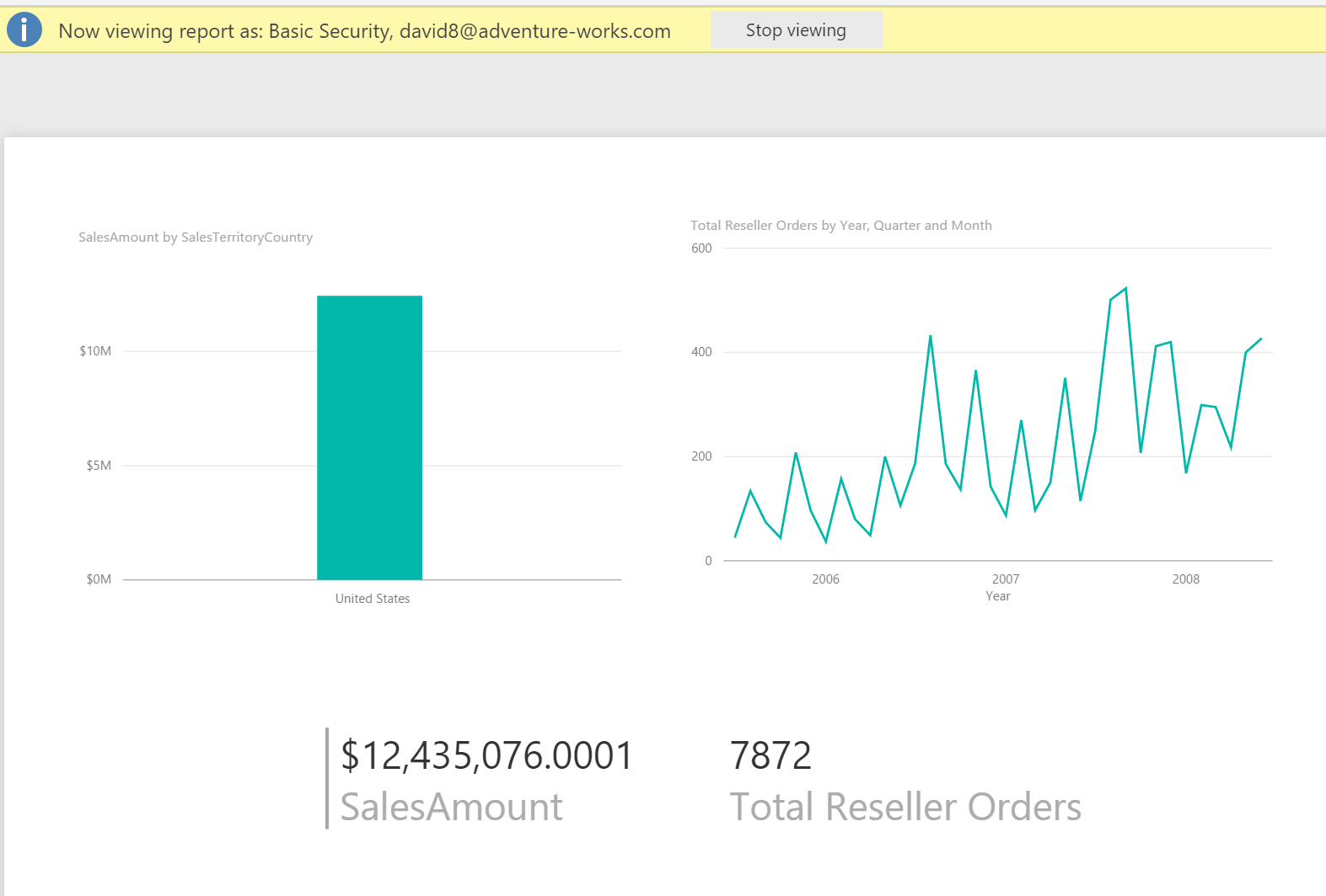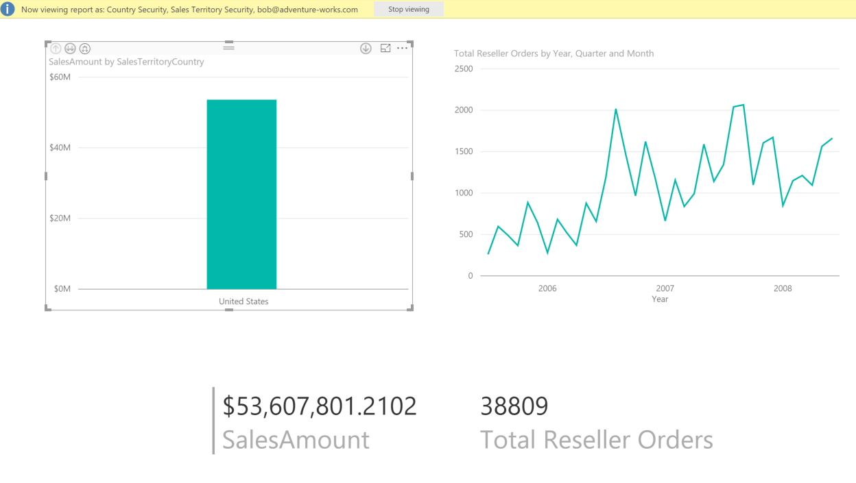 Now when we view the report as Bob, we are seeing all of the data for the United States with a single CountryKey in the security table instead of having to have a row for every territory.