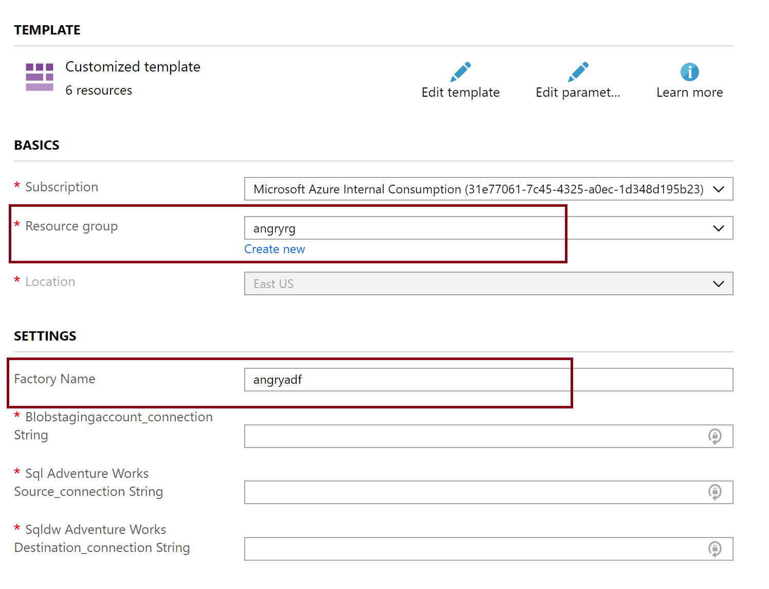- Even if you choose to use Teradata or Netezza or SQL on prem for the source, go ahead and use an azure sql database so that the template deploys, then you can modify the source. (it will cost you $5 a month)