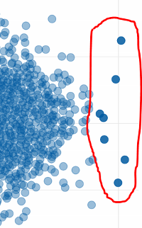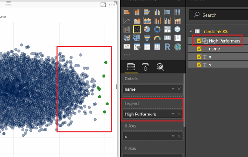 In the September 2017 release, you can now be confident that all of your outliers are being shown. No one can visually look at a plot and interpret several thousand data points at once, but you can interpret which of those points may be outliers. I decided to test this out myself between a Python scatter plot of 50k data points and Power BI.